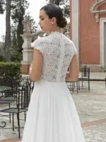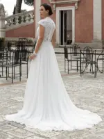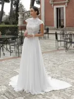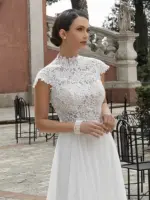 Abito scivolato in georgette con corpetto in pizzo girocollo
