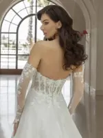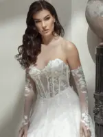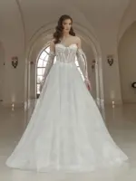 Linea A con manicotti corpetto con stecche a cuore in pizzo Chantilly