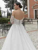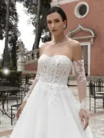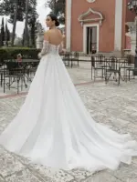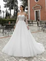 Abito romantico in pizzo chantilly scollatura a cuore e manicotti