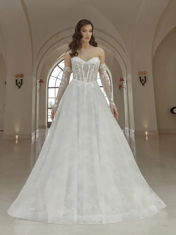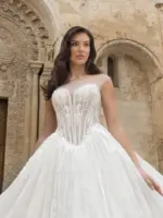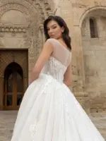 Abito principessa  in pizzo chantilly e tulle glitter