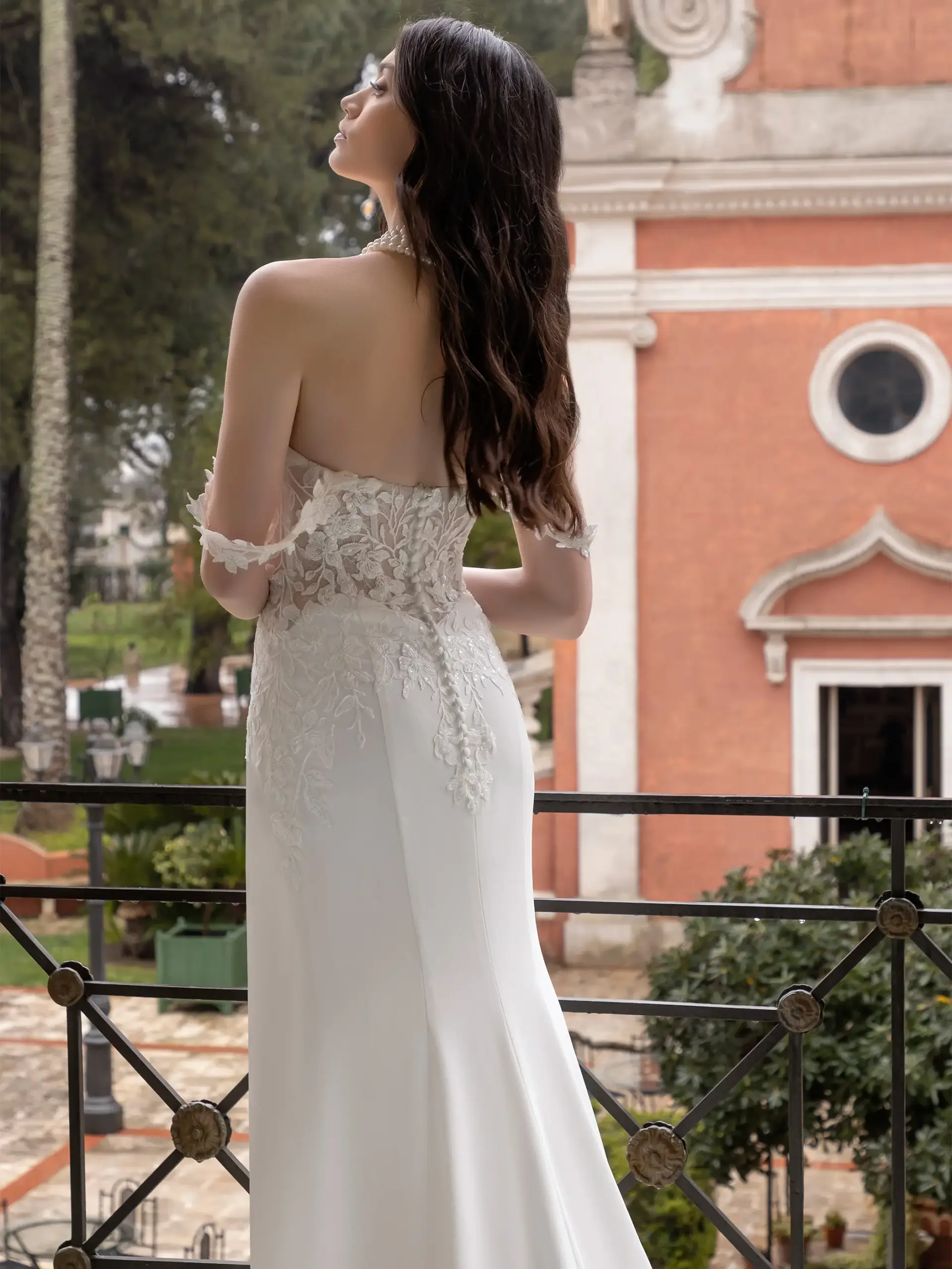 Abito sirena con omerali staccabili in pizzo chantilly e pizzo ricamato