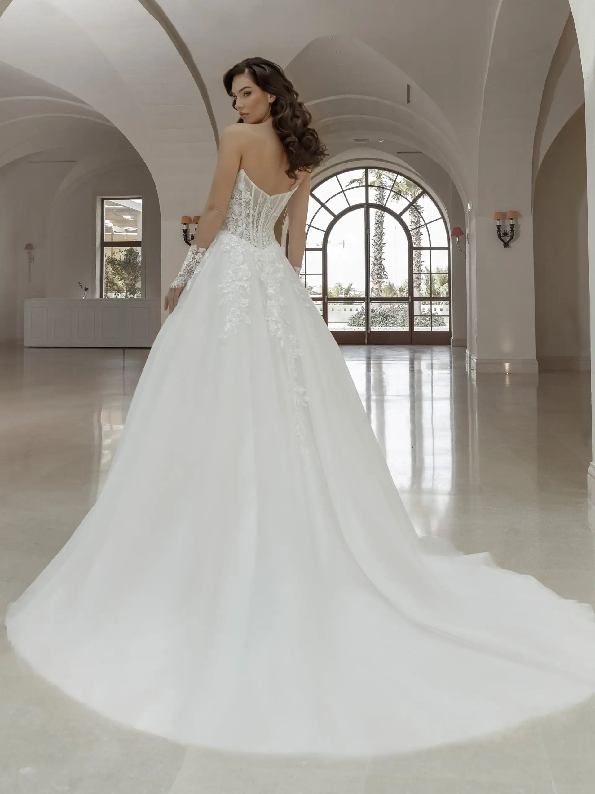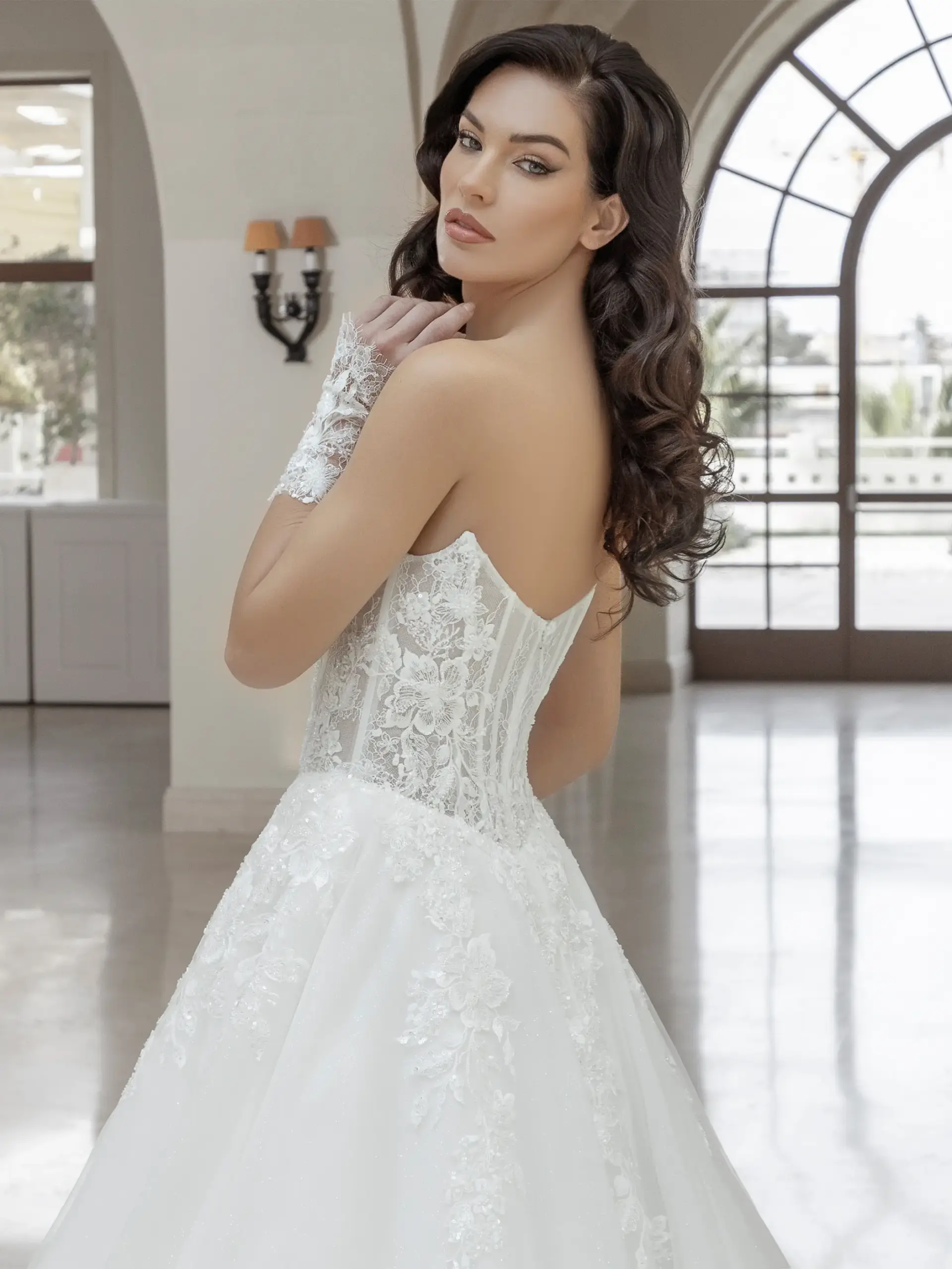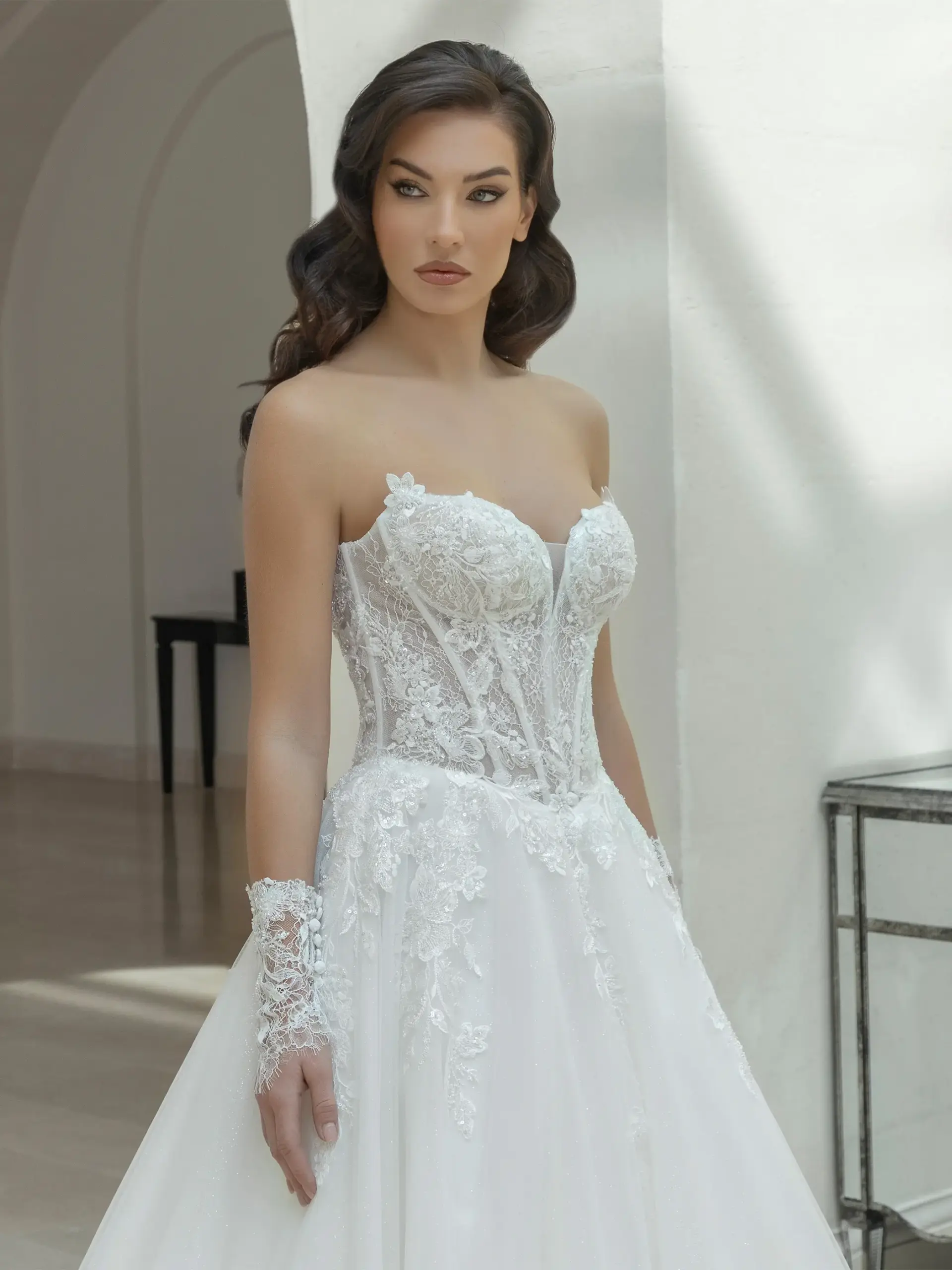 Abito romantico con corpetto a cuore in pizzo chantilly tulle glitter e polsini